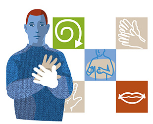 Ihmisen anatomiaan, fysiologiaan ja terveyteen liittyvää viittomistoa.